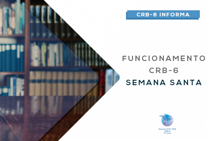 Prezados bibliotecários, informamos que o CRB-6 não funcionará nos dias 18/4 (quinta-feira) e 19/4 (sexta-feira) em virtude do feriado da Semana Santa. Retornaremos o funcionamento no dia 22/04 (segunda-feira). Desde já, desejamos uma excelente Páscoa a todos.