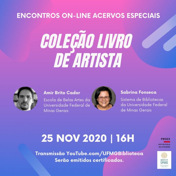 Conservação de obras jurídicas, repositórios digitais e coleções africanas foram os assuntos discutidos nas lives propostas pela Universidade Federal de Minas Gerais (UFMG). Para finalizar a série, o professor Amir Brito Cadôr, da Escola de Belas Artes, e a bibliotecária Sabrina Rodrigues, da instituição promotora do evento, falarão sobre livros de artistas. O bate-papo…