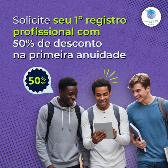 Solicite seu 1º registro profissional com 50% de desconto na primeira anuidade