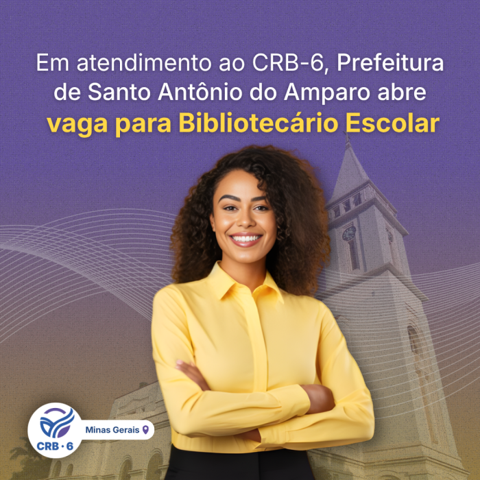 Em atendimento ao CRB-6, Prefeitura de Santo Antônio do Amparo (MG) abre vaga para Bibliotecário Escolar