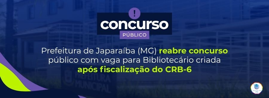 A Prefeitura de Japaraíba, em Minas Gerais, reabriu as inscrições para concurso público contendo uma vaga específica para Bibliotecário. A criação do cargo é resultado direto da atuação fiscalizatória do Conselho Regional de Biblioteconomia 6ª Região (CRB-6), que identificou a ausência de profissionais habilitados em espaços públicos do município.