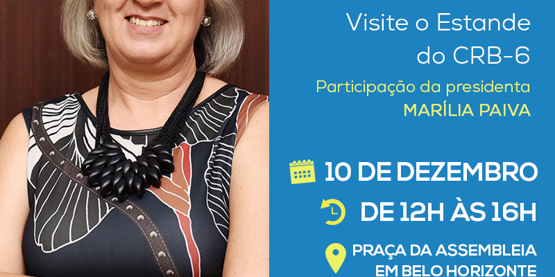 A presidenta do Conselho Regional de Biblioteconomia da 6ª Região (MG/ES), Marília Paiva, participará do evento “Conselhos na Praça”, dia 10 de dezembro, reunindo alguns conselhos e ordens profissionais de Minas Gerais, na praça da Assembleia.