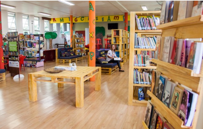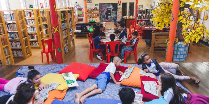 Segundo ela, no Ramacrisna, existe a preocupação dos profissionais de afastar a ideia de que a biblioteca tem que ser em espaço silencioso, frio e escuro. “Há espaços para leitura com puffs e almofadas onde as crianças e jovens param para ler o que escolheram e trocar impressões. A nossa biblioteca não é um espaço só de leitura, mas um ponto de encontro, de conversa e de lazer”, ressalta.